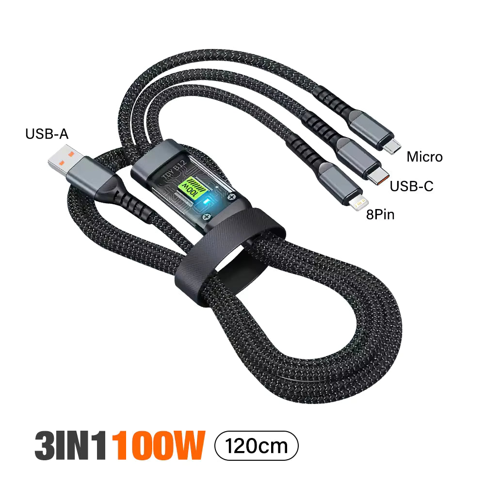 Transparentes, leuchtendes 3-in-1-Schnellladekabel