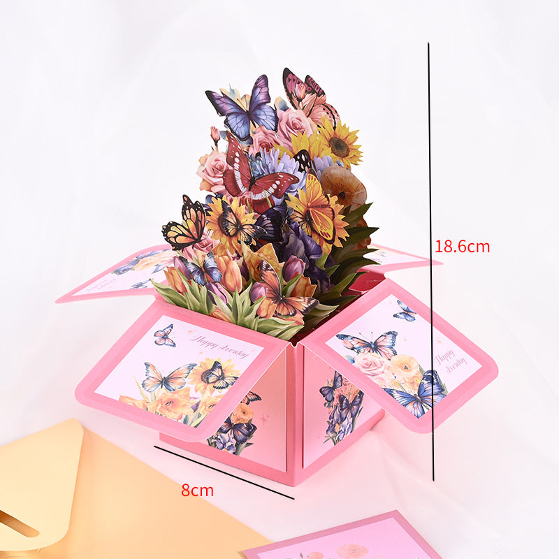 KUNSTVOLLES 3D-POP-UP-DESIGN – Diese Karte entfaltet sich zu einem atemberaubenden Strauß aus Schmetterlingen und Blumen und sorgt für einen unvergesslichen „Wow“-Moment, den flache Karten einfach nicht bieten können. So kommt die Botschaft richtig zur Geltung.