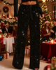 Diese Paillettenhose ist perfekt für ein niedliches lil Christmassy Outfit 😍✨ Machen Sie eine mutige Aussage mit diesen Damen Pailletten Sparkle Breite Beine Hose - die ultimative Fusion von Glamour und Komfort.