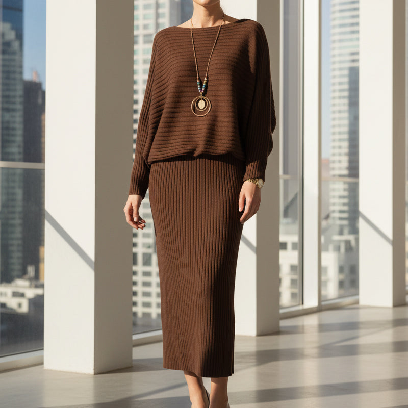 Packungsinhalt: 1 * Damen-Set: Gerippter Strickpullover & Midirock