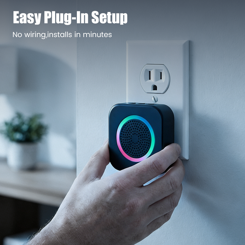 VISUELLE LED-LICHTWARNUNG – Der Empfänger verfügt über eine helle, farbenfrohe LED-Anzeige, die blinkt, wenn die Glocke geläutet wird. Dieser visuelle Hinweis eignet sich perfekt für laute Umgebungen, auf Partys oder als unverzichtbares Hilfsmittel für Hörgeschädigte.
