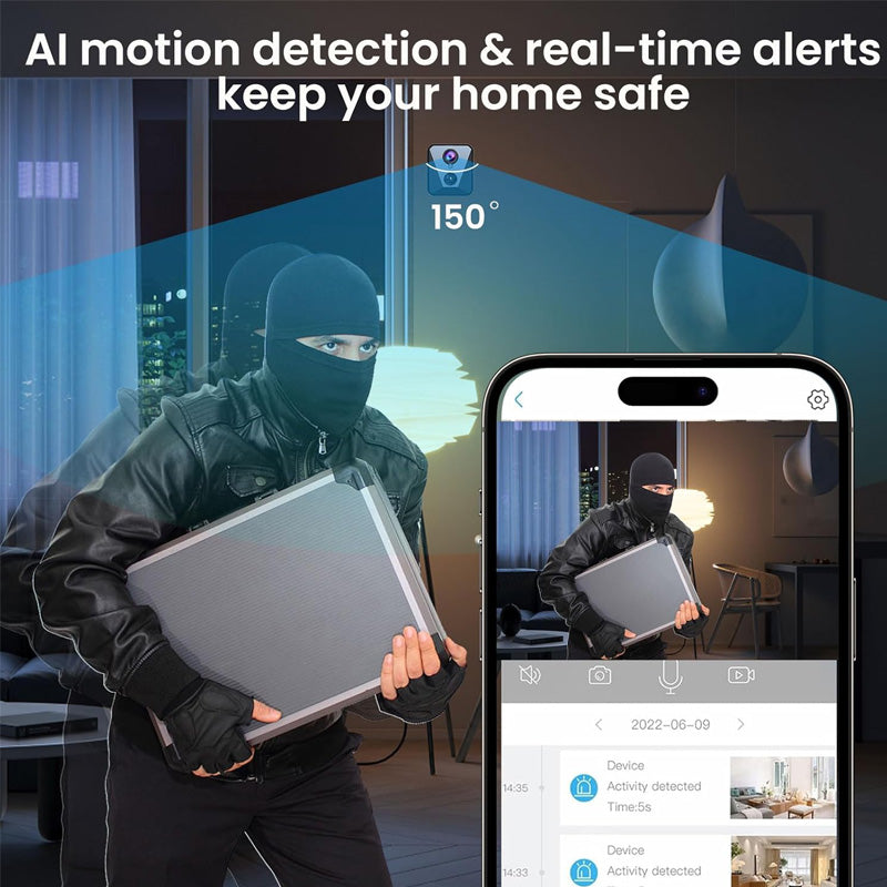 Erfassen Sie jedes Detail mit scharfen, hochauflösenden 1080P-Bildern! Das 150° Weitwinkelobjektiv deckt komplette Räume ab und reduziert tote Winkel – ideal für Haushalts- oder Bürosicherheit. Perfekt als Babyfon, Haustierüberwachung oder zur Pflege älterer Menschen – keine wichtige Szene wird verpasst!
