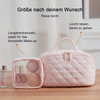 the cloud-soft puffer material of lining is crush-resistant for protecting fragile items and machine-washable for effortless cleaning, making this cosmetic travel bag a long-lasting companion.