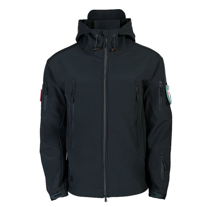 Design: Militärisches taktisches Design mit Stehkragen und durchgehendem Reißverschluss, Patch auf jedem Arm.
