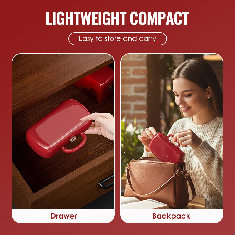 Aufgrund seiner kompakten Größe und des geringen Gewichts lässt es sich problemlos in einer Schublade aufbewahren oder im Gepäck verstauen. Seien Sie für jeden Kleiderschrank-Notfall gerüstet, egal ob zu Hause oder unterwegs.